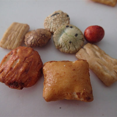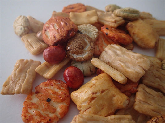 ข้าวเหนียว, ถั่วลิสง, แป้งสาลี, แป้งมันสำปะหลัง, แป้งมัน, มอลโตเดกซ์ทริน, น้ำตาล, ซอสถั่วเหลือง, เกลือ, สาหร่าย, E102, E133, E150c, E160c