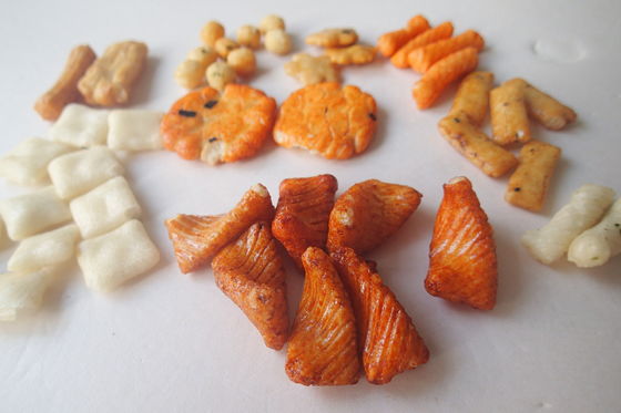 วัตถุดิบ | ข้าวเหนียว, ถั่วลิสง, แป้งสาลี, แป้งมันสำปะหลัง, แป้งมัน, มอลโตเดกซ์ทริน, น้ำตาล, ซอสถั่วเหลือง, เกลือ, สาหร่าย, E160c, E150C |