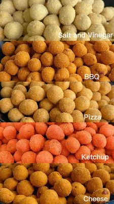 ถั่วลิสง, แป้งสาลี, แป้งข้าวโพด, น้ำตาล, มอลโตเดกซ์ทริน, สาหร่ายทะเล, E102, E133