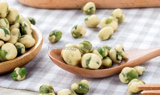 BRC OU KOSHER ได้รับการรับรองถั่วลันเตาเคลือบกรอบขนมขบเคี้ยวถั่วลันเตาสีเขียว